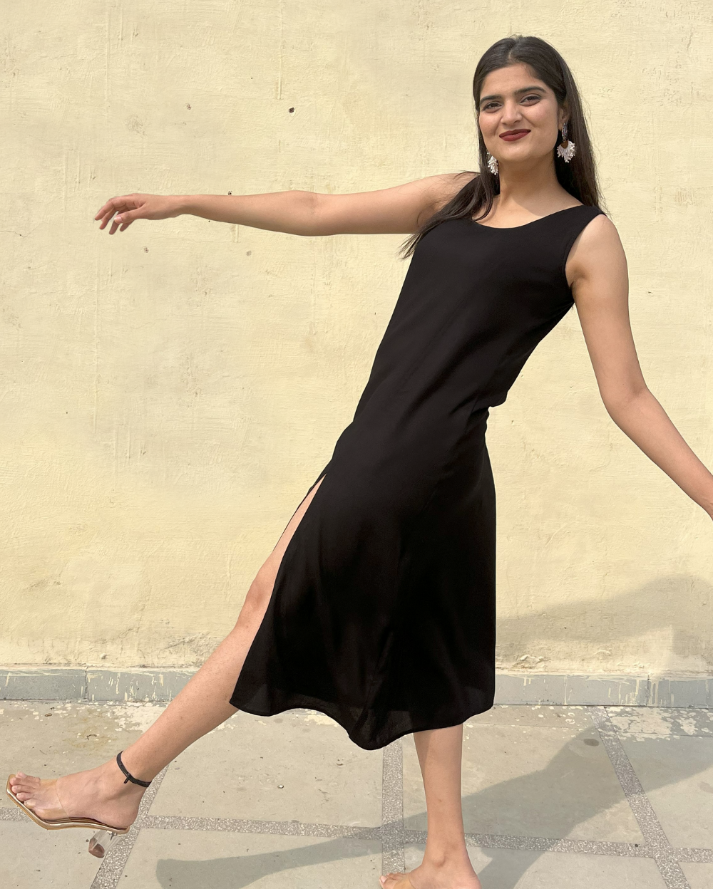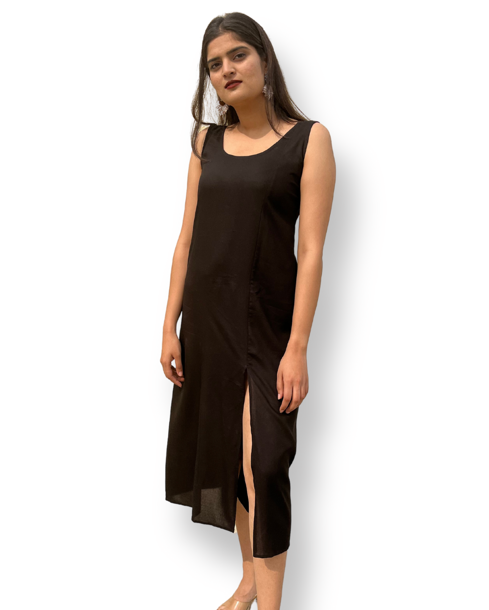 It's comfortable, stylish, and versatile. The dress is made from soft and breathable cotton fabric, making it perfect for summer days. The high slit adds a touch of allure, while the sleeveless design makes it perfect for hot weather. You can dress it up or down, depending on the occasion. Pair it with heels and a statement necklace for a glamorous look, or dress it down with sandals and a straw bag for a more relaxed vibe.